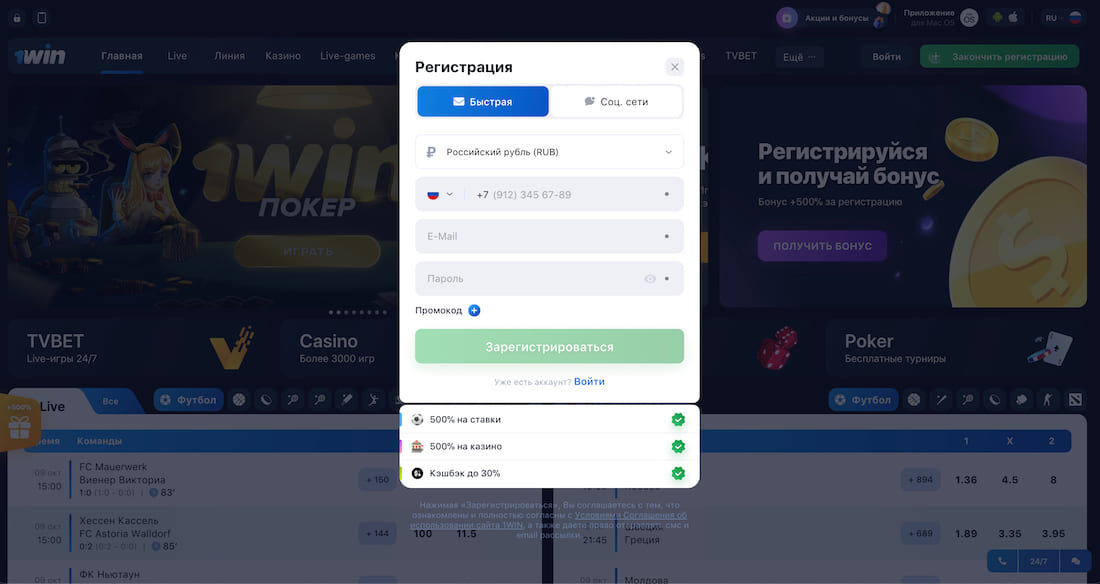 Авторизация в личном кабинете происходит по стандартной схеме — достаточно ввести логин и пароль. Также 1 Win предлагает быстрый вход через социальные сети, что значительно ускоряет процесс входа.