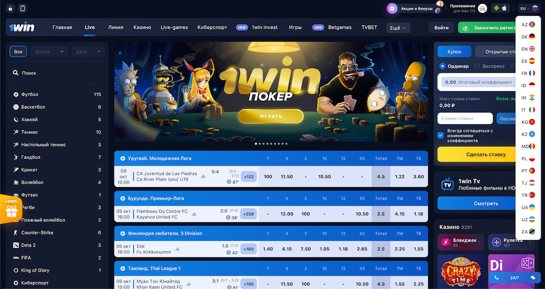 Букмекерская контора 1Вин предоставляет своим пользователям доступ к широкому спектру спортивных прогнозов. Здесь можно делать ставкионлайн на популярные дисциплины, такие как футбол, хоккей, баскетбол, теннис, а также на более редкие виды спорта, включая дартс, снукер, керлинг и флорбол.